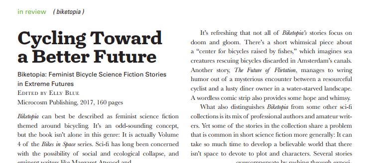 Biketopia can best be described as feminist science fiction themed around bicycling.